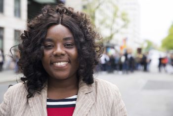 Sandra Kwabea Sarkwah arbeitet bei SEND Ghana, einer Organisation, die Kakaobäuerinnen und Kakaobauern dabei unterstützt, ihre Rechte gegenüber der Politik und der Schokoladenindustrie einzufordern.
