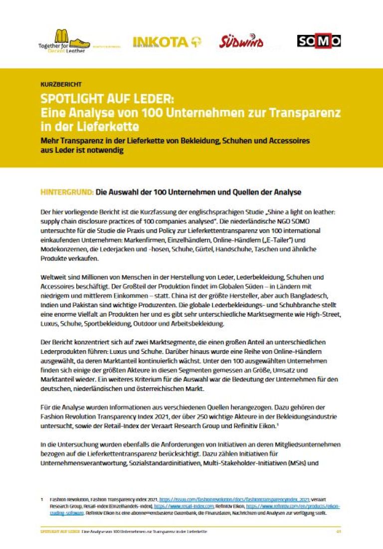 Globale Schuh- und Lederindustrie in die Pflicht nehmen
